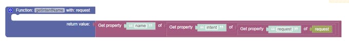Click the “Add New” node under Functions in the BROWSER section.In the created function placeholder block, click the area that says “doSomething” and change it to “getIntentName”