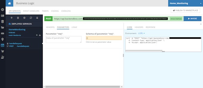 STEP 6: Creating Alexa Skill using Backendlessbackendless is used to create the alexa skill. It is a simple drag and drop programming used to create alexa skill (or any programs) which can be accessed by backendless API.